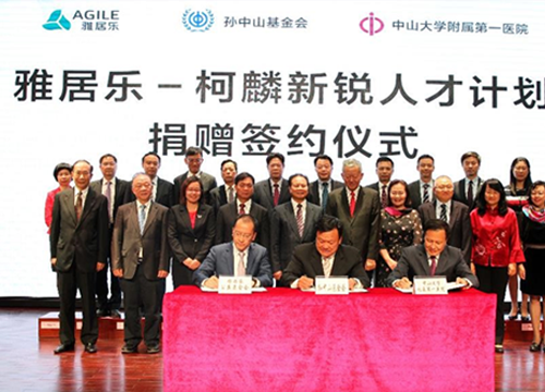 2017年,雅居樂在中山大學(xué)附屬第一醫(yī)院(以下簡(jiǎn)稱“中山一院”),向中山大學(xué)捐贈(zèng)一千萬元人民幣,設(shè)立“中山大學(xué)-雅居樂慈善發(fā)展基金”。同時(shí)通過孫中山基金會(huì),向中山一院捐贈(zèng)五千萬元人民幣,推行“雅居樂—柯麟新銳人才計(jì)劃”,助力高水平人才引進(jìn)和培養(yǎng)。